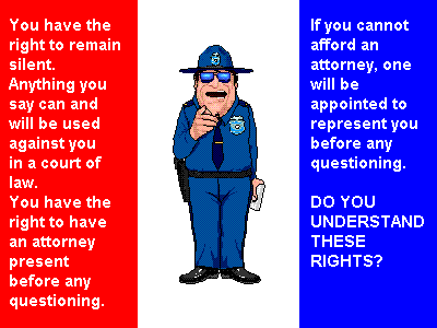 An example of a situation where Miranda Warnings were unnecessary may be illustrated by a case that was presented to us a few years ago. A police officer was called to the home of a suspect accused of committing a crime against another family member. During discussions with other family members, the suspect approached the officer and began expressing shame about what he had done. The officer stopped the conversation, demanding that the suspect not speak until he could be taken back to the station and "read his rights." He refused to let the suspect continue talking, despite the fact that the suspect was not in custody and had not been asked any questions! By the time the suspect was transported to the police station and advised of his constitutional rights, he no longer wished to discuss the matter. A good confession may have been lost simply because the officer misunderstood the requirements of Miranda.